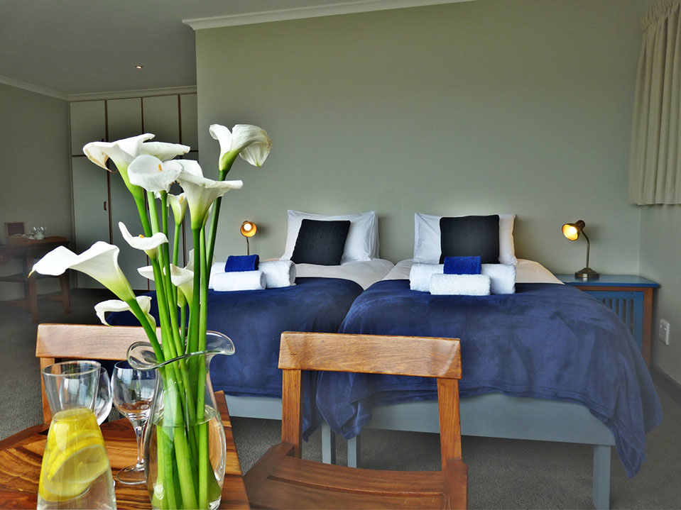 Die Besonderheit des Knysnaviews Guesthouses zeigt sich in seinem einzigartigen Gemisch aus gemütlichen, europäischen und afrikanischen Ambiente. Die 4 Superior Zimmer mit großer privater Terrasse und spektakulären Ausblick, gehobener Badausstattung, sind stilvoll eingerichtet und verfügen über kostenfreies Wi-Fi, digitale TV Kanäle, DVD player, Tee/Kaffestation, Wäscheservice, Safe, Haarfön.